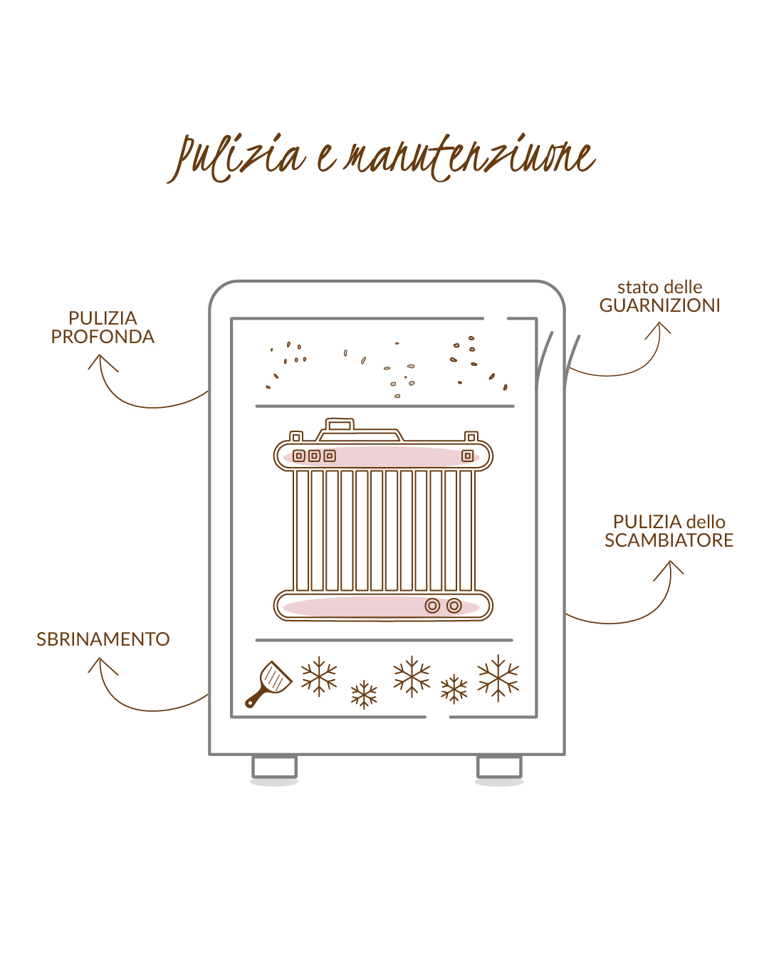 Manutenzione: occhio allo stato delle guarnizioni (devono aderire perfettamente), lo scambiatore va pulito regolarmente, così come va organizzato e attuato uno sbrinamento periodico che eviti gli accumuli di ghiaccio.